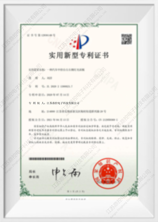 گواهی اختراع مدل کاربردی برای تابلوهای چراغ سمت چپ و راست کنسول مرکزی خودرو